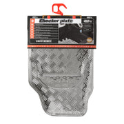 Design: Metallic checker plate look with raised heel pad for extra grip and wear protection