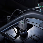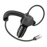The coiled Type-C cable keeps your setup neat and tangle-free while providing fast, reliable charging for compatible devices. Paired with a USB port for additional connectivity, this charger is ideal for drivers who need versatility, speed, and convenience on the road.